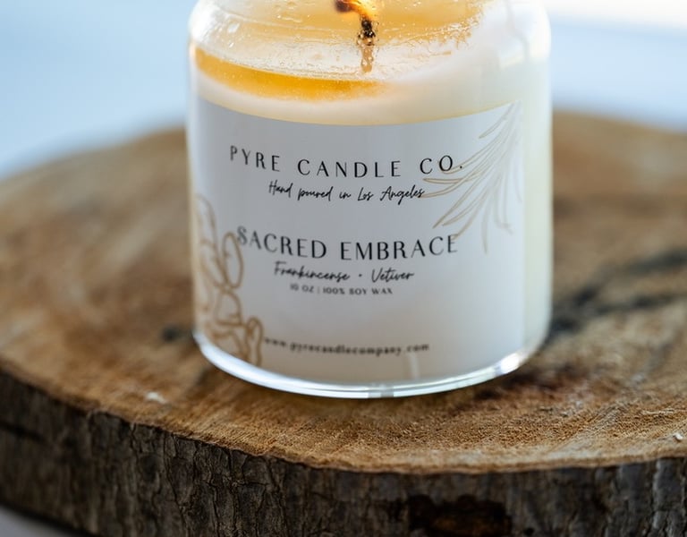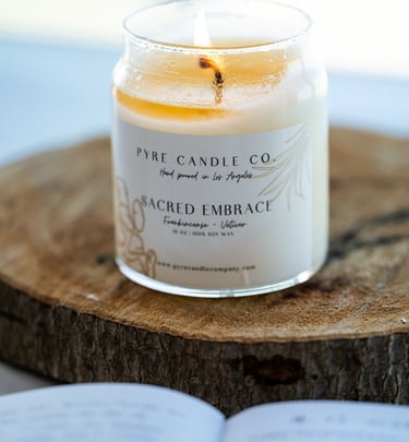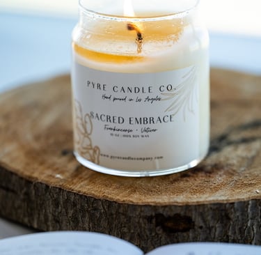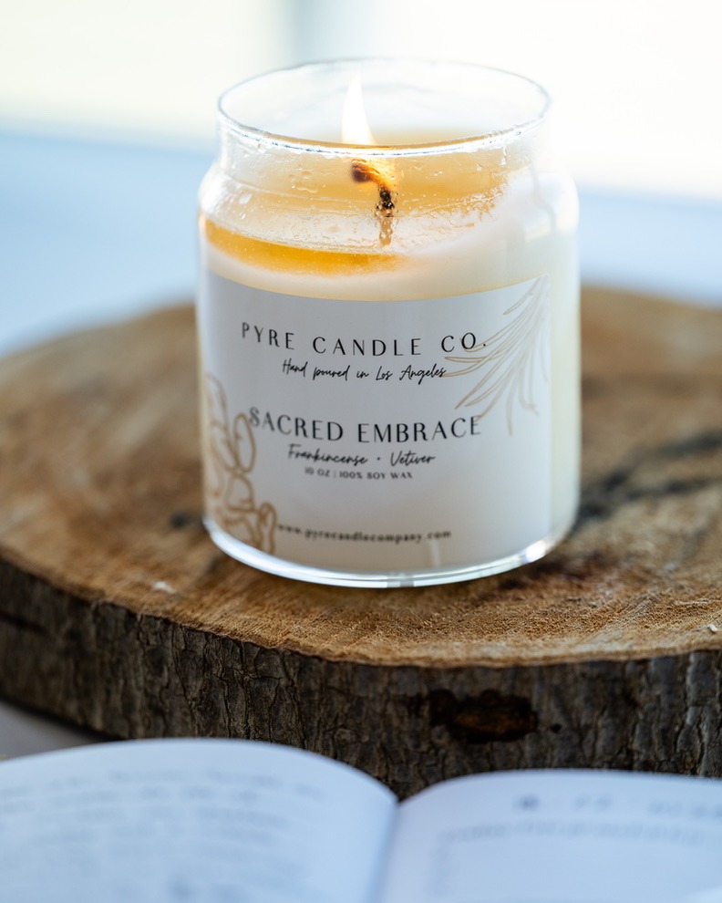 Every candle is hand-poured in small batches in Los Angeles using 100% soy wax. The fragrances are chosen and curated, not just to smell beautiful, but to evoke a feeling of warmth, groundedness, mystery, reverence, gathering.